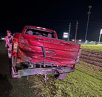 January 17, 2024 Nose Dive Gravel road went right, truck went straight. Took a nose dive into an oak tree across a creek.